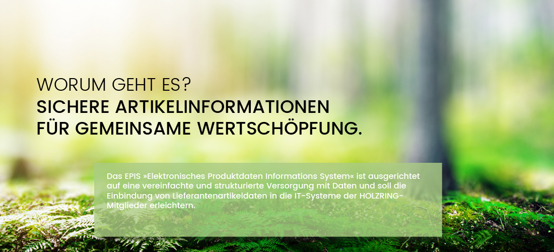 Die HOLZRING-Mitglieder können alle Daten und Dateien in einem einheitlichen Format aus der Datenbank abrufen. Individuelle Abstimmungen mit Lieferanten oder Entwicklungen einer Vielzahl von Datentransferschnittstellen brauchen die HOLZRING-Mitglieder nicht vorzunehmen. Das erledigt der HOLZRING über das EPIS.